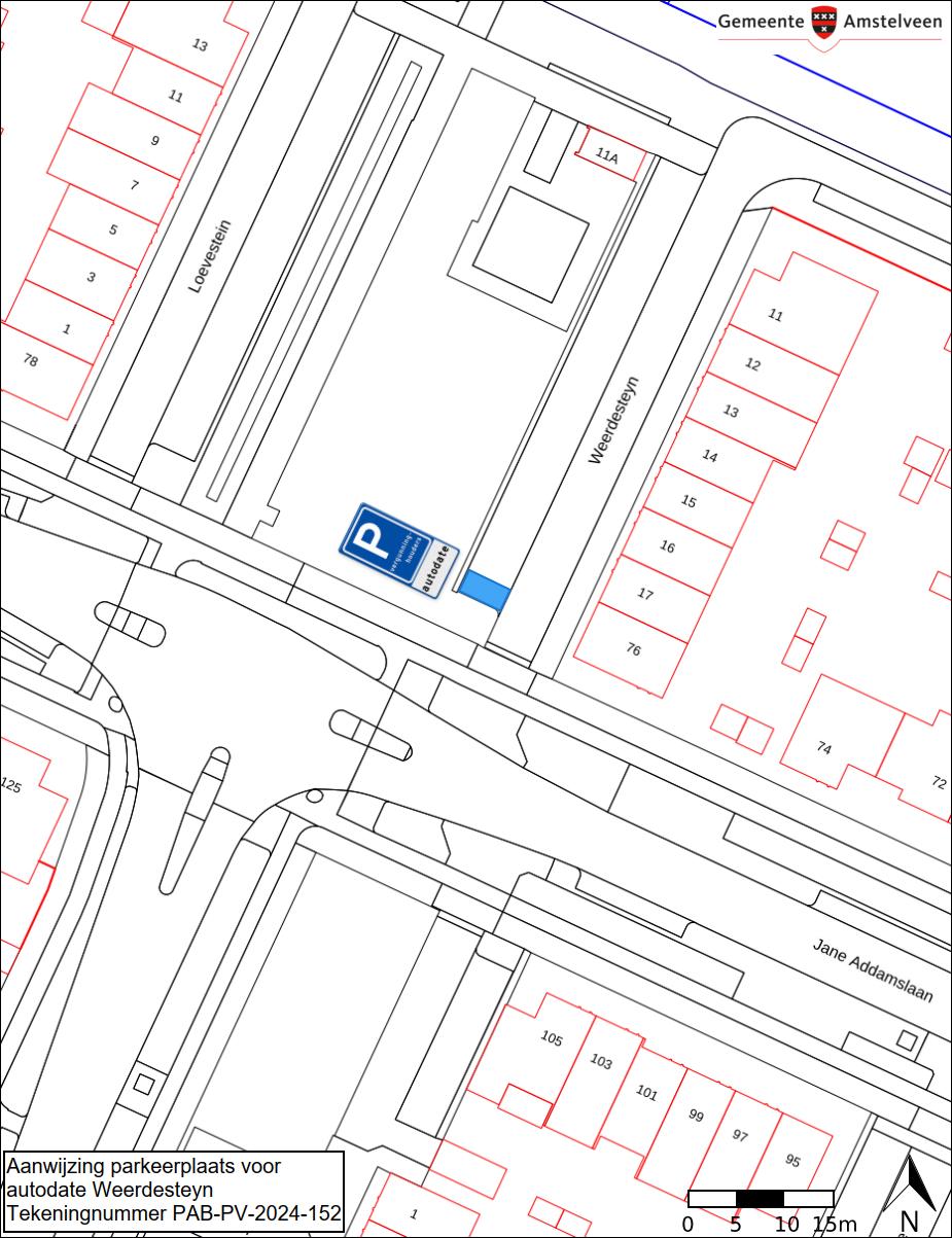 Burgemeester en wethouders van Amstelveen besluiten daarnaast om in de straat Weerdesteyn een parkeerplaats aan te wijzen als belanghebbendenplaats voor het parkeren door vergunninghouders voor autodate.