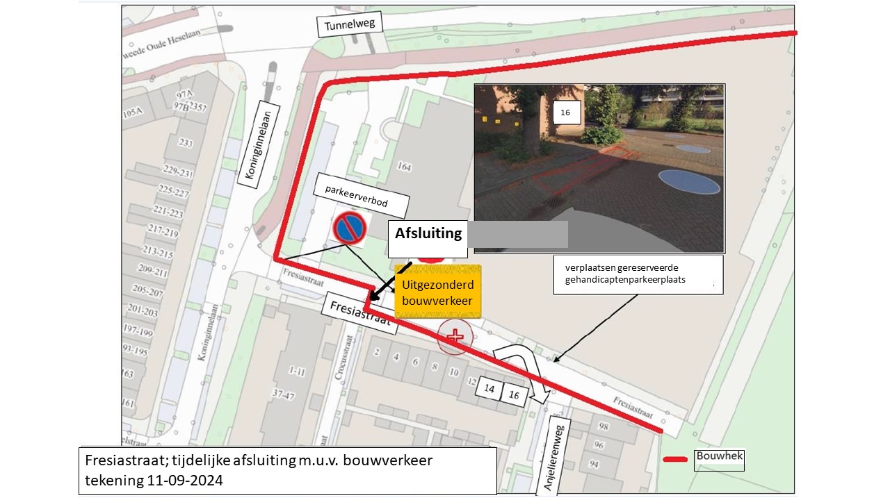 dat bij besluit van 10 juli 2024 nr. D240626935 is besloten gedurende de periode van 1 januari 2025 tot en met 1 augustus 2028 een parkeerverbod in te stellen in een deel van de Fresiastraat en er bovendien tijdelijk een gehandicaptenparkeerplaats op kenteken wordt verplaatst;