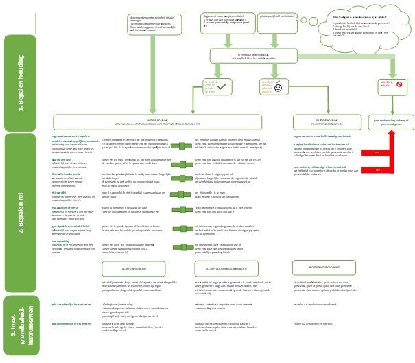 Deze actieve facilitaire rol kan niet zonder voorafgaand collegebesluit. Het college wordt door de gemeenteraad gemandateerd voor deze actieve rol. Voor strategische beslissingen raadpleegt het college eerst de gemeenteraad, voor zover dit buiten de bevoegdheid van het college valt.