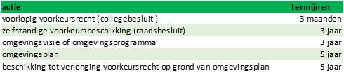 Het vestigen en bestendigen van het voorkeursrecht gaat gepaard met verplichte stappen en termijnen. Denk hierbij aan de publicatie van het voorkeursrecht, het informeren van de grondeigenaren met een aangetekende brief, het inschrijven in de basisregistratie Kadaster Publiekrechtelijke beperkingen (BRK-PB) etc. Belanghebbenden kunnen een zienswijze, bezwaar of beroep indienen.