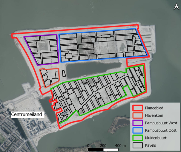 Aan de oostzijde van Amsterdam, in het IJmeer, is een kunstmatig eiland aangelegd en verbonden met het Centrumeiland (figuur 1.1). Nu wordt het nog gedeeltelijk gebruikt als een stadsstrand, maar de komende jaren zullen er ca. 8.000 nieuwe woningen komen, verdeeld over enkele buurten.