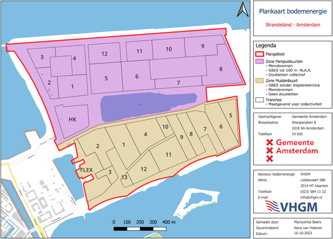 De gemeente Amsterdam heeft VHGM daarom opdracht gegeven een bodemenergieplan voor het gebied op te stellen. Dit bodemenergieplan bevat beleidsregels voor het op 1 december 2020 bij verordening aangewezen interferentiegebied “Strandeiland”. De beleidsregels voorzien in een toetsingskader voor het beoordelen van vergunningaanvragen voor bodemenergiesystemen. Ze dienen ter bewerkstelliging van een efficiënte benutting van de ondergrond voor huidige en toekomstige gebruikers en daarnaast om het risico op bronverstopping te verkleinen.