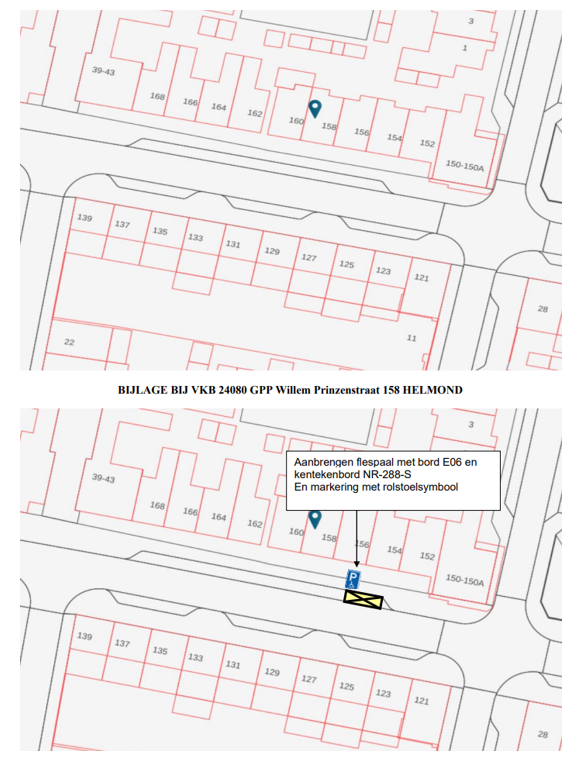 Verkeersbesluit voor het aanwijzen van een gehandicaptenparkeerplaats aan Willem Prinzenstraat ter hoogte van nummer 158 te Helmond