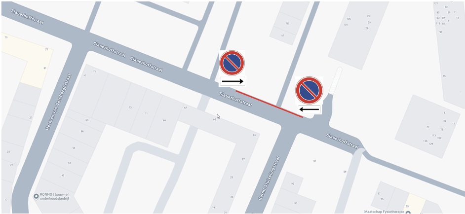 dat daarom een parkeerverbod zal worden ingesteld aan de graszijde van de Slauerhoffstraat ter hoogte van huisnummer 63 over een lengte van 20 meter zodat de vuilniswagens voldoende ruimte hebben om de bocht naar de Garmt Stuivelingstraat veilig te maken;