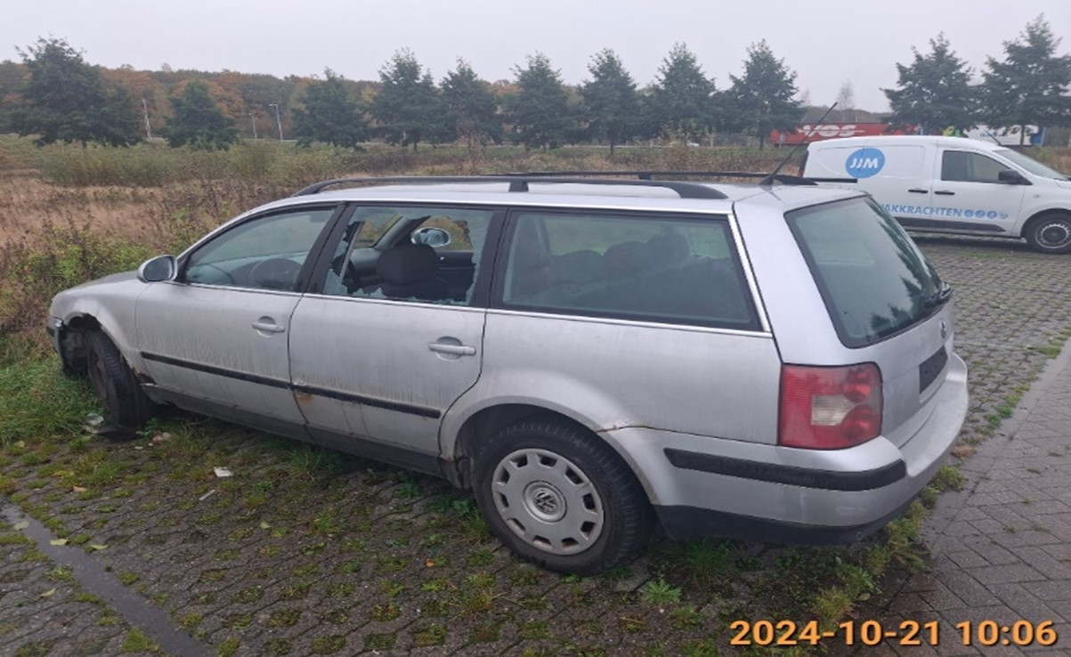 Volkswagen Passat, zilvergrijs, met kenteken KWI-91-C Het voertuig stond al lange tijd met schade en roestvorming op het P+R parkeerterrein aan de Doorloop (Ei van Drunen) in Drunen.