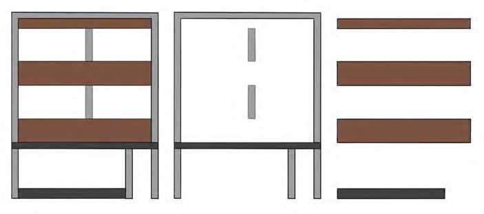 De vakken tussen de kolommen worden gevuld met bandramen zoals bestaand, in lichte schilderkleuren. De vakvullingen worden zoals bestaand uitgevoerd in keramische baksteenstrips in twee tinten uit het palet. Het is de bedoeling dat de bovenwoningen alle in een gelijke kleurenopzet uniform worden uitgevoerd.
