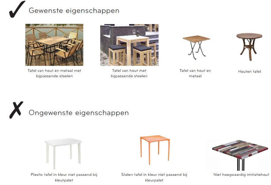 In het Kwaliteitskader staat zowel bij Tafels als bij Stoelen dat er geen plastic gebruik mag worden. Dat is niet haalbaar, veel terrasmeubilair is van hoogwaardig kunststof (duurzaam) en doet geen afbreuk aan de kwaliteit. Hoe zien jullie dit? Wellicht niet nagedacht over kunststof materialen en de omschrijving ervan.