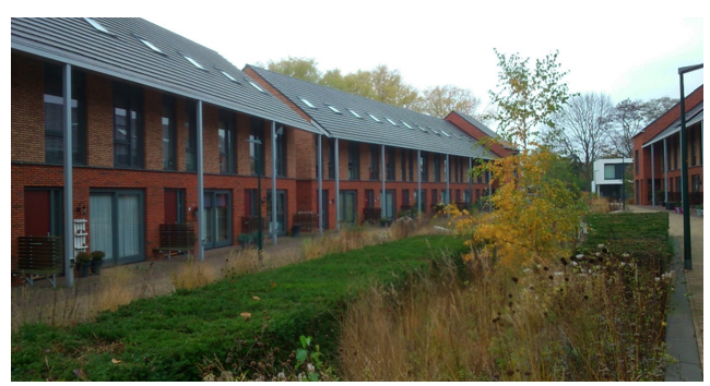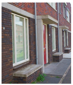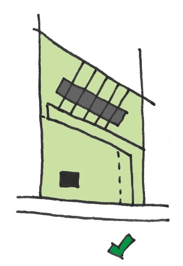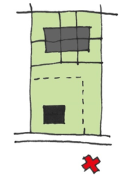 Een andere optie is dat de ontsluiting van de woningen via de voorgelegen bebouwing verloopt en daarmee verbonden wordt, op dezelfde manier als appartementen via een centrale toegang ontsloten worden.
