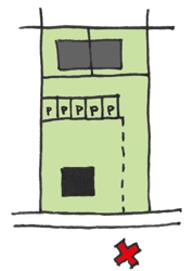 Een van de belangrijkste kenmerken van een goede inpassing van tweedelijns bebouwing is dat het duidelijk moet zijn dat de woningen via een openbare route bereikbaar zijn. Dit betekent dat de weg ernaartoe duidelijk als een brede en goed toegankelijke openbare ruimte vormgegeven wordt. De aangegeven breedte van 3,0 meter hoeft niet helemaal uit een weg voor auto’s te bestaan, maar kan bijvoorbeeld ook een voetpad en groenstrook bevatten. Dit is zowel voor de ruimtelijke kwaliteit als voor de toegankelijkheid voor hulpdiensten van belang. Daarom is het niet mogelijk deze toegang geheel te gebruiken voor het parkeren van auto’s. Als het om te voldoen aan de parkeernorm nodig is te parkeren op eigen terrein en het alleen mogelijk is dat op te lossen door te parkeren op de toegang van 3 m breed dan voldoet de aanvraag niet aan de gewenste ruimtelijke kwaliteit voor tweedelijns bebouwing. Er moet dan naar een andere oplossing gezocht worden, zoals het toevoegen van een extra toegang tot de tweedelijns woning op het perceel waar het zicht niet geblokkeerd wordt door voertuigen. Of door de toegang breder te maken, zodat er naast de geparkeerde auto(‘s) nog 3 m ruimte overblijft. De inrichting van het terrein moet duidelijk op een tekening bij de aanvraag aangegeven worden, zodat dit beoordeeld kan worden.