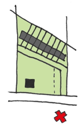 Bebouwing (in de vorm van een hoofdgebouw) die niet direct gelegen is aan de openbare ruimte, maar die gelegen is achter de achtergevellijn van een hoofdgebouw dat wel een directe relatie (in de vorm van de directe ligging aan de openbare ruimte, een voortuin, (kort) oprit, zichtrelatie vanuit het hoofdgebouw) heeft met de openbare ruimte. Hierdoor wordt er een tweede lijn met bebouwing gecreëerd.