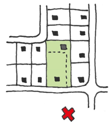 Er moet een volwaardige toegang tot de woningen komen. Dit betekent dat de ontsluiting van de tweedelijns bebouwing via een goed vormgegeven openbare ruimte van minimaal 3,0 m breed mogelijk is. De andere optie is dat de ontsluiting van de tweedelijns woningen via de voorgelegen bebouwing verloopt, op dezelfde manier als appartementen via een centrale toegang ontsloten worden.