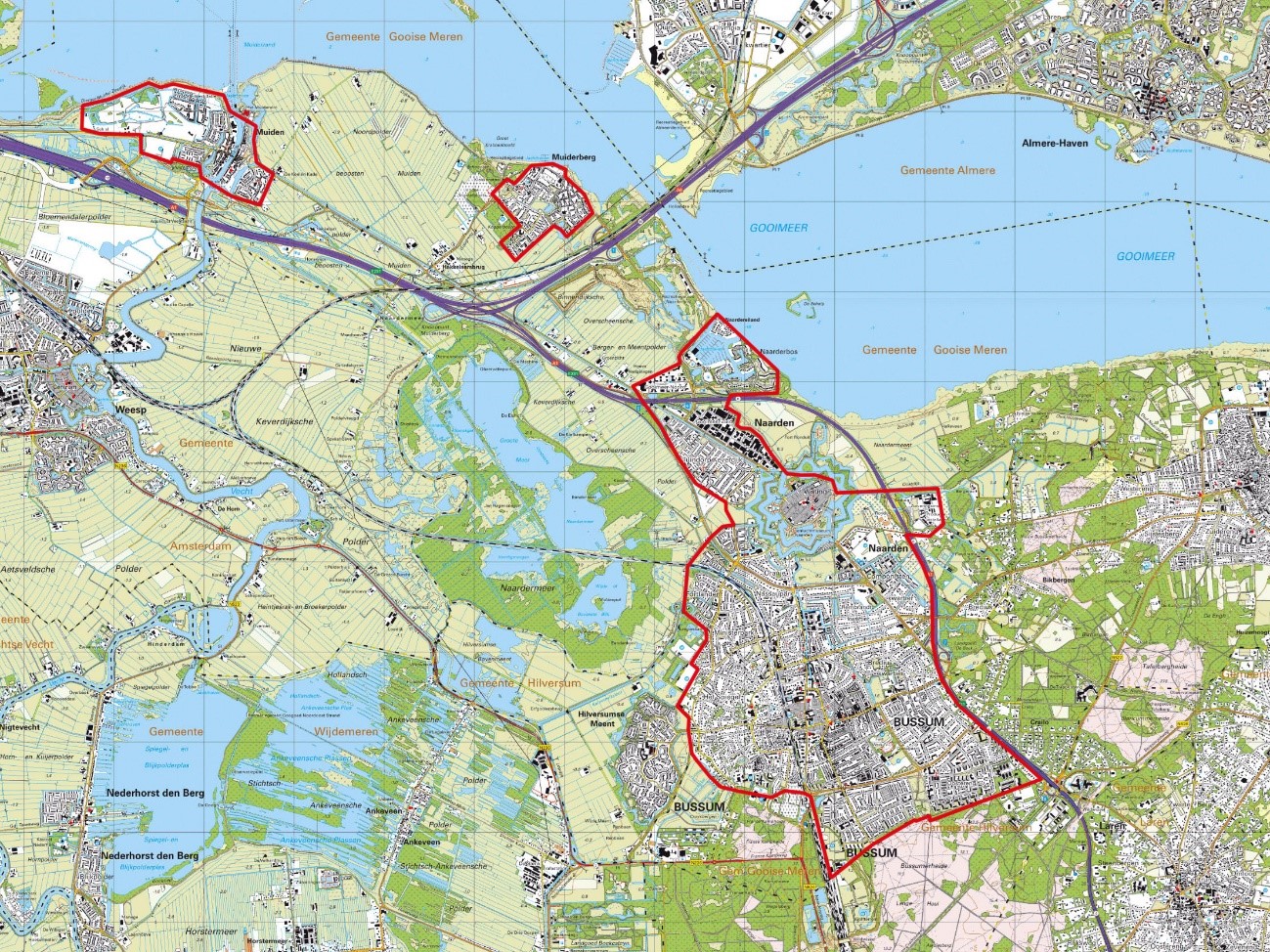 Het beleid voor tweedelijns bebouwing heeft alleen betrekking op locaties binnen het stedelijk gebied. Hieronder vallen globaal de kernen van Bussum, Muiden, Muiderberg en Naarden. De ligging is op de kaart in bijlage 2 te zien. Deze keuze is gemaakt omdat het beleid een bijdrage wil leveren aan de stedelijke verdichting. Daarnaast heeft het buitengebied andere ruimtelijke kenmerken en kwaliteiten, waarbij nieuwe woningen op een andere manier ruimtelijk ingepast moeten worden.