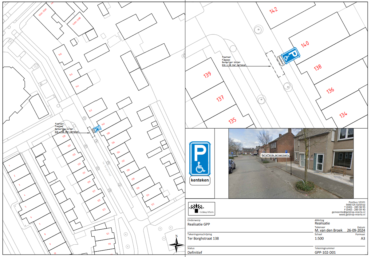 Verkeersbesluit voor het inrichten van een individuele gehandicaptenparkeerplaats op kenteken ten behoeve van een bewoner aan Ter Borghstraat te Geldrop