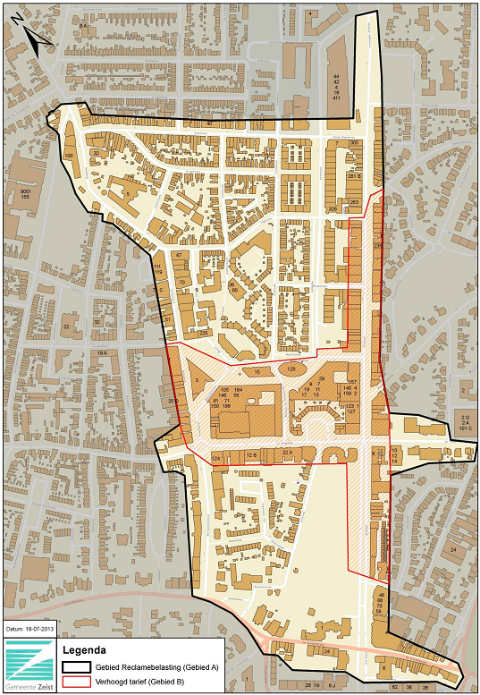 Kaart behorende bij de Verordening op de heffing en de invordering van reclamebelasting 2025