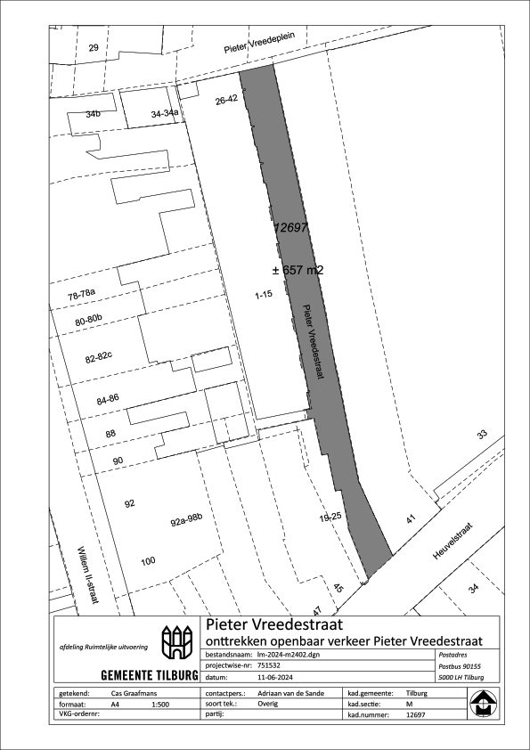 De Pieter Vreedestraat, zoals aangeduid op de bijgevoegde kaart, te onttrekken aan het openbaar verkeer ten behoeve van de beoogde herontwikkeling tot woongebied met bijbehorende binnentuin.