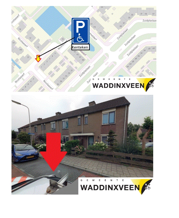 Verkeersbesluit voor het aanwijzen van een gehandicaptenparkeerplaats op kenteken aan Nicolaaserf te Waddinxveen