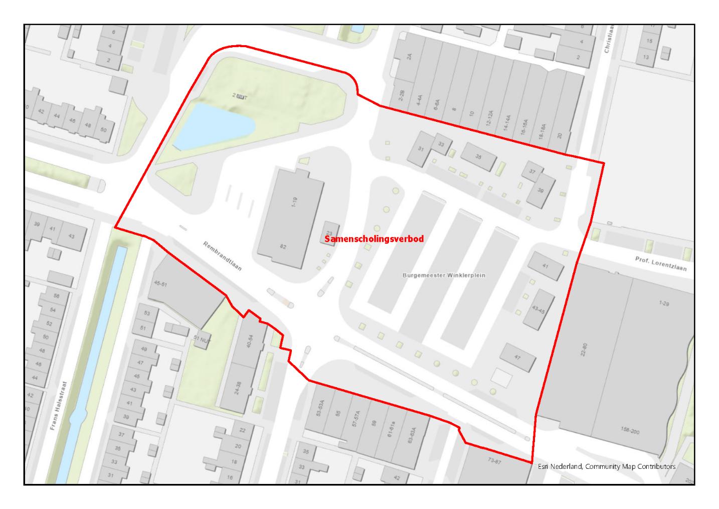 Als gebied waar het niet is toegestaan zich op te houden met drie personen of meer wordt aangewezen: