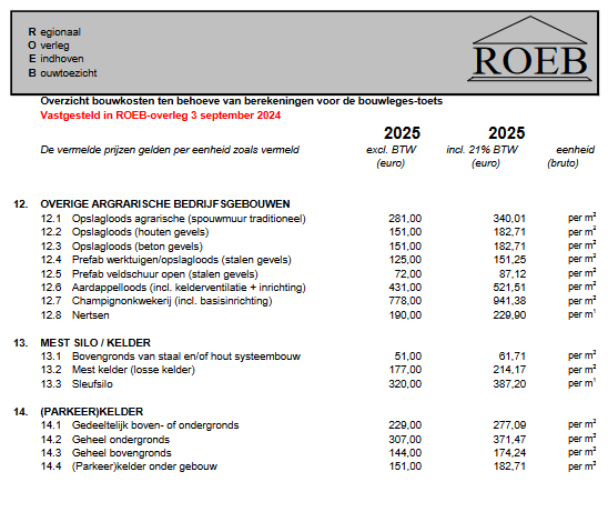 Tarieventabel 2025 bij verordening leges 2025 gemeente Tiel