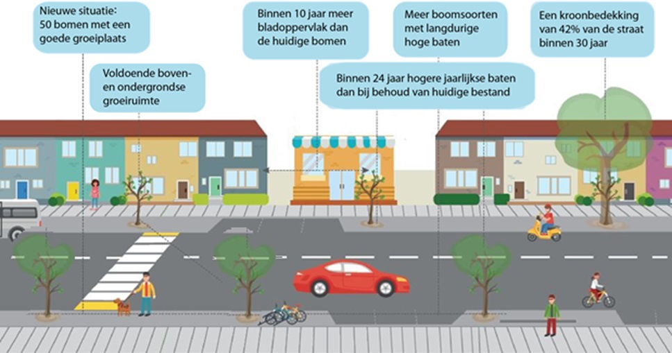 De boomsoort dient klimaatadaptief, goed voor de biodiversiteit en gevarieerd qua soort te zijn;