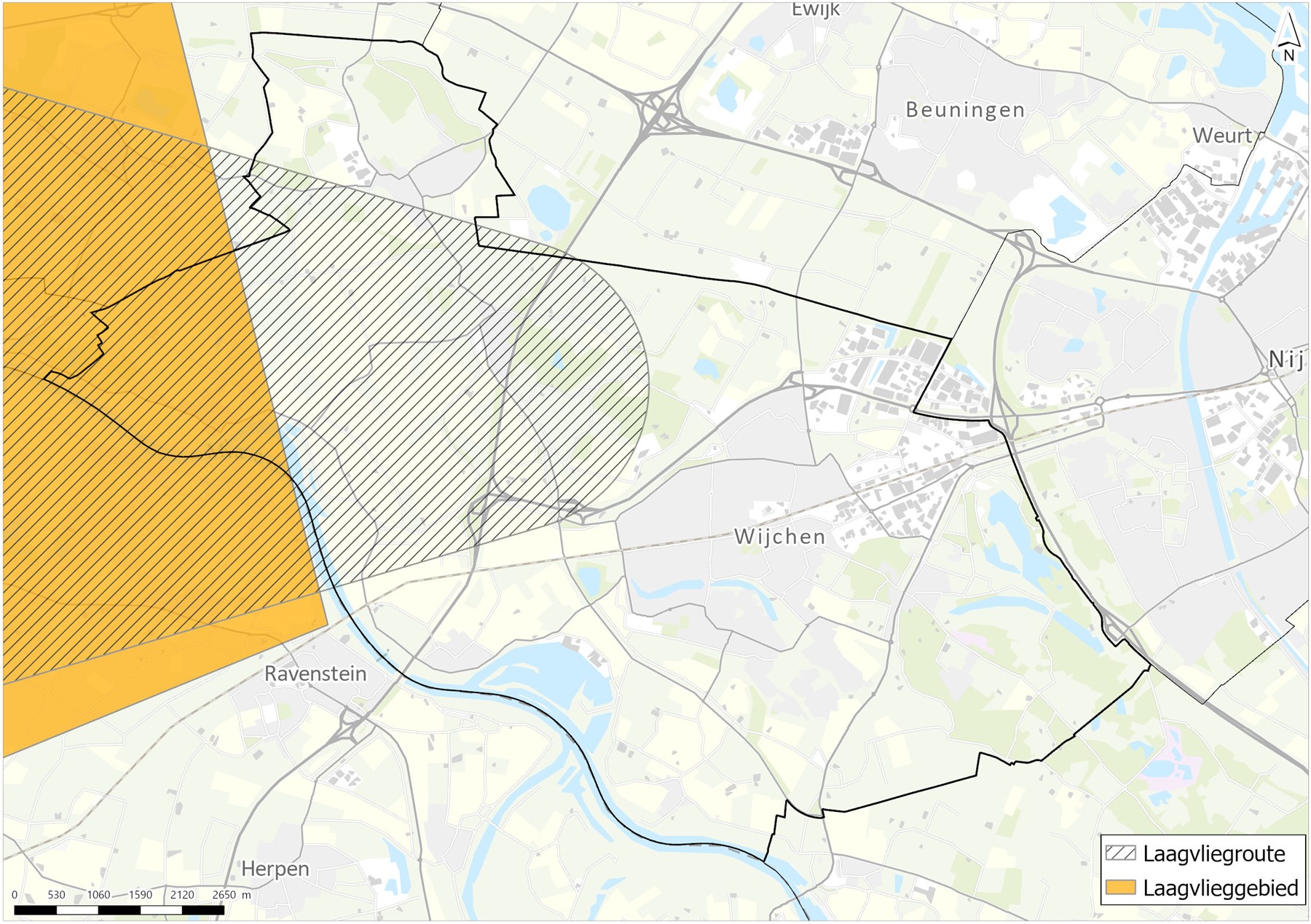 In het westen van de gemeente loopt een laagvliegroute voor training. Deze laagvliegroute wordt zo’n 20 uur per jaar gebruikt. Deze route is uitgezet aan de hand van punten met een buffer eromheen.