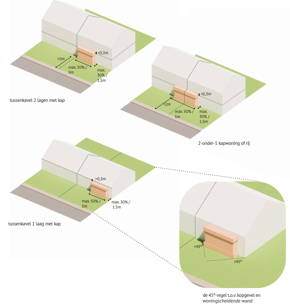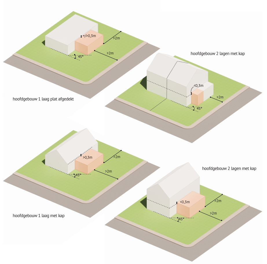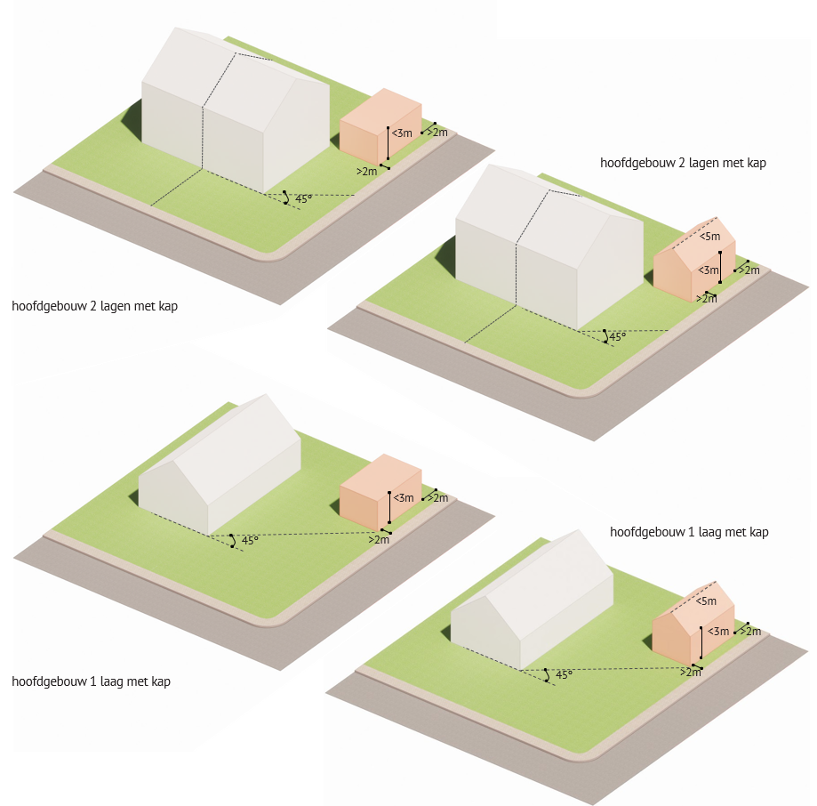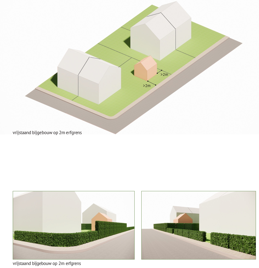 Specifiek gaat het hier om vrijstaande bijgebouwen die aan de zijkant op een hoekkavel komen en zijn gericht op de openbare ruimte. Aan