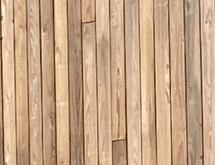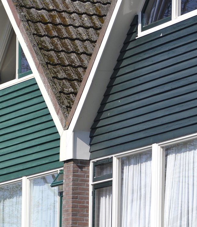 Gepotdekseld: Horizontaal gedeeltelijk over elkaar vallende gevelbeplating (oorspronkelijk houten planken).