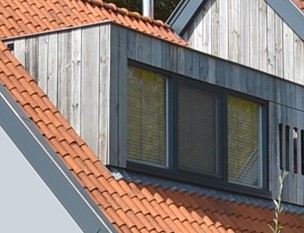onder links: De dakkapel is zorgvuldig op de twee-onder-een-kapwoning geplaatst. In kleur en materiaal wordt aansluiting bij het bestaande gezocht.