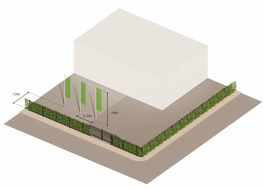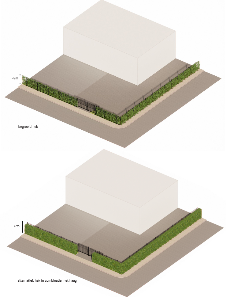 Erfafscheidingen aan de zijde van de openbare ruimte zijn van grote invloed op de ruimtelijke kwaliteit. Doel is om de impact van een erfafscheiding op de openbare ruimte te beperken én bedrijven een duurzame en aantrekkelijke uitstraling te geven. Over het algemeen zijn erfafscheidingen in het voorerf tot 1m hoog en in het archtererf 2m hoog vergunningvrij. De wens voor een erfafscheiding aan de voorzijde hoger dan 1m op een bedrijfsterrein hangt samen met de wens voor meer privacy en/of veiligheid.