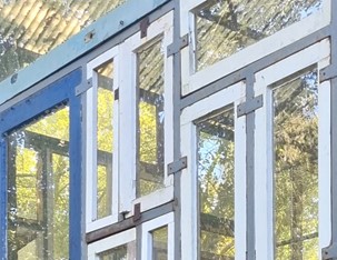 Materialen en kleuren van de erker zijn afgestemd op de materialen en kleuren van het hoofdgebouw.