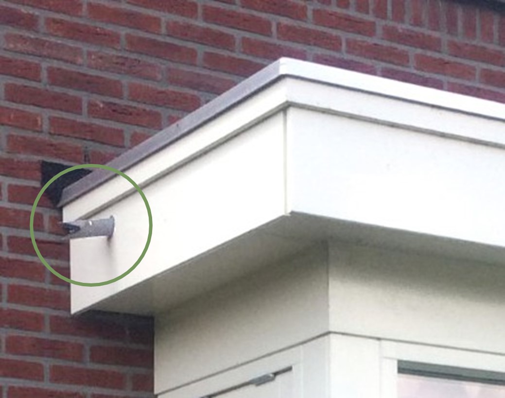 Aangekapt: Met kap bevestigd aan dakvlak.