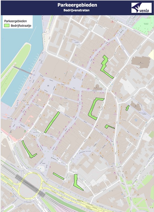 doelgroepen: bedrijven die gevestigd zijn buiten het betaald parkeergebied en een beroep of bedrijf uitoefenen waarvoor die aantoonbaar op regelmatige basis binnen de parkeerregulering van Venlo het gebied (zoals beschreven in bijlage 1A) werkzaamheden moeten verrichten waarbij de aanwezigheid van het motorvoertuig voor de werkzaamheden noodzakelijk is. Als doelgroep wordt in elk geval gezien: thuiszorg, bouw- en installatiebedrijven, reinigingsdiensten;