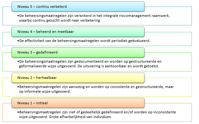 Volwassenheidsniveau 5 is het ultieme, maar vraagt een grote betrokkenheid van alle medewerkers voor informatieveiligheid. Dat is voorlopig niet reëel.