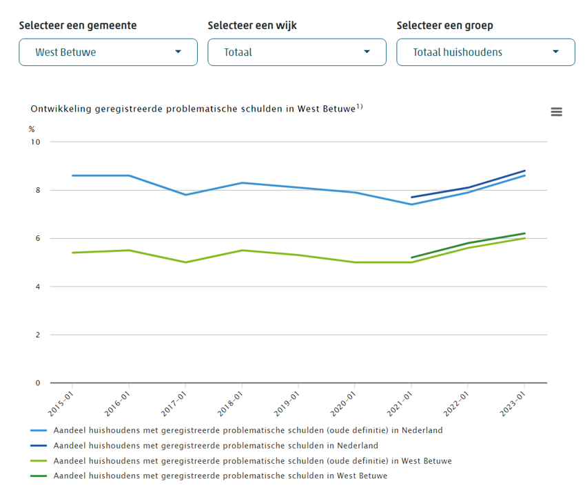 Dashboard CBS: schuldenproblematiek West Betuwe t.o.v. landelijk8.