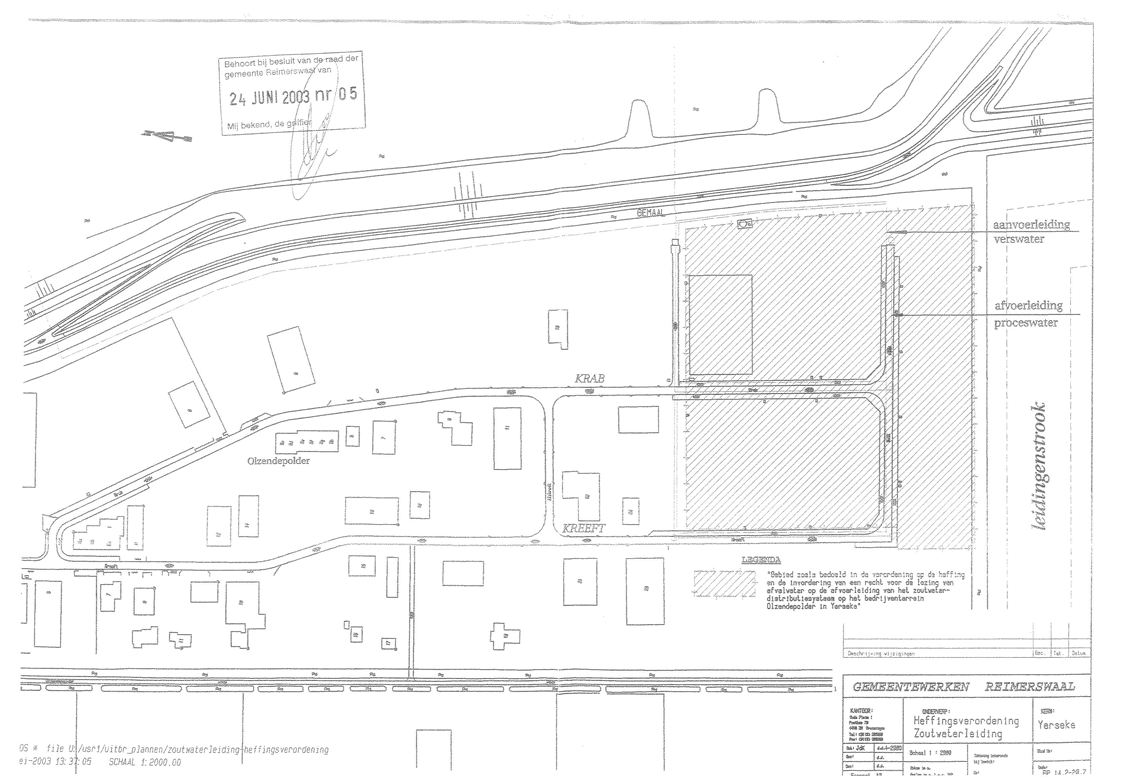 Verordening op de heffing en de invordering van een recht voor de lozing van afvalwater op de afvoerleiding van het zoutwaterdistributiesysteem zoals aanwezig op een deel van het bedrijventerrein “Olzendepolder” in Yerseke en zoals weergegeven op de bij deze verordening behorende tekening