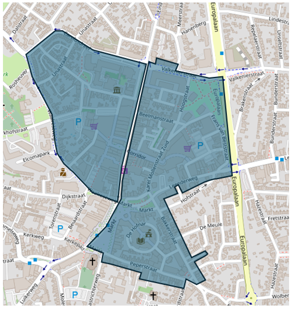 De ambulante vergunning is geldig binnen het gehele gebied waar parkeerregulering geldt.