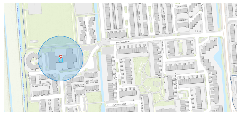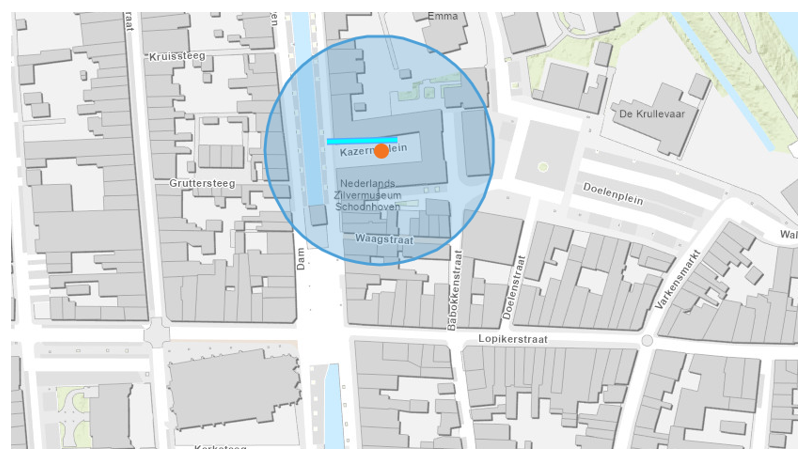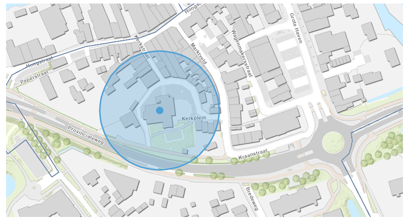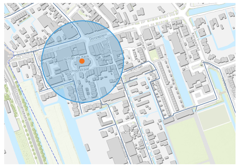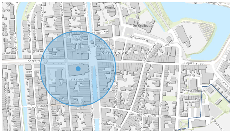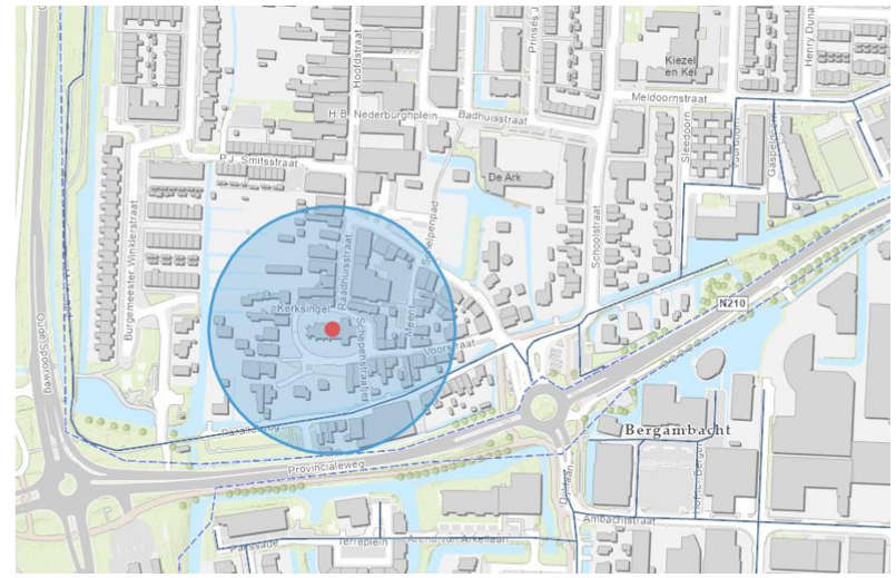 Het tijdsbestek van 18.00 uur tot 21.30 uur in een straal van 100 meter rond de volgende hierbij aangewezen plaatsen: