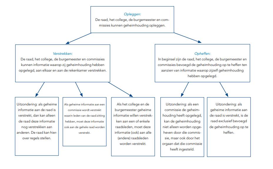 2. Indien de burgemeester of het college vertrouwelijke informatie wil delen met (een deel van) de raad of commissie, betreft dit een informele afspraak. Het is gebruikelijk dat er terughoudend wordt omgegaan met de gedeelde informatie.