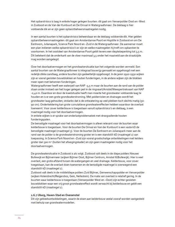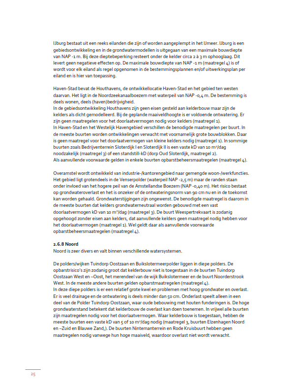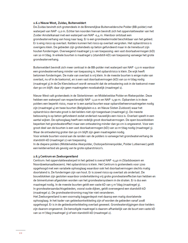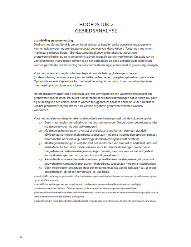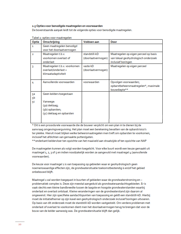 Maatregelen benodigd in verband met het voorkomen van overlast of onderlast, inclusief klimaatadaptiviteit, door middel van een vaste kD2/doorlaatvermogen (kelderbouw toegestaan met extra maatregelen op eigen perceel, waardoor een vooraf vastgesteld doorlaatvermogen per buurt/woonblok wordt gerealiseerd);