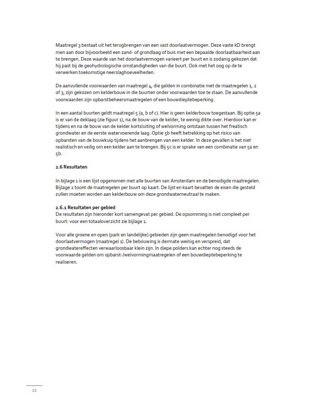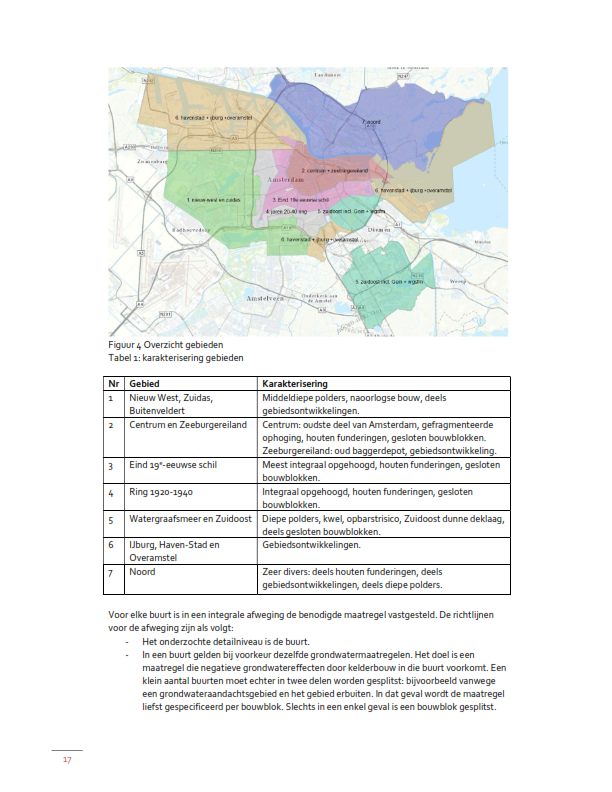 Dit uitgangspunt geldt voor de gebieden onder 1 t/m 4 van “overige zone 2” op de kaart die, als bijlage 1, deel uitmaakt van deze beleidsregel. In artikel 3 van deze beleidsregel wordt verwezen naar de technische maatregelen die voor de desbetreffende gebieden/buurten getroffen moeten worden; deze worden ook genoemd in de bijlagen 1 en 2. In genoemd artikel 3 wordt ook aangegeven of voor de beoordeling ter zake een geohydrologisch onderzoeksrapport bij de aanvraag omgevingsvergunning moet worden overgelegd.