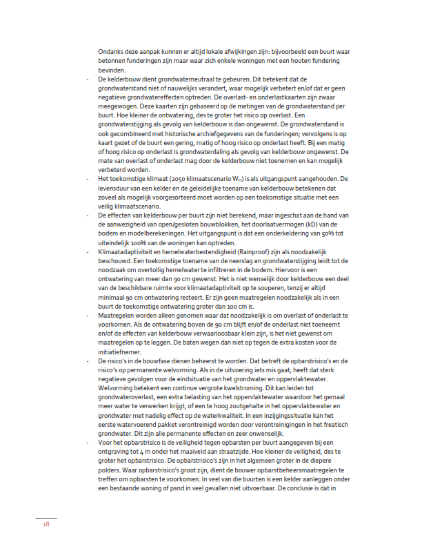 Ten aanzien van de kelders die groter zijn dan 300 m² en/of dieper dan 4 meter wordt in het Afwegingskader bepaald dat medewerking alleen mogelijk is indien aan de hand van een geohydrologisch rapport wordt aangetoond dat de aanleg grondwaterneutraal zal plaatsvinden.