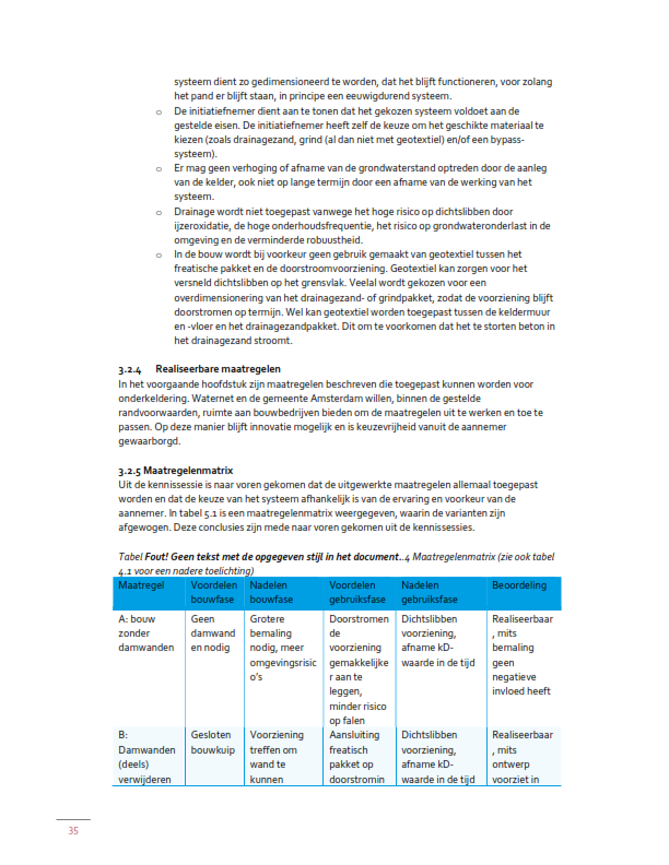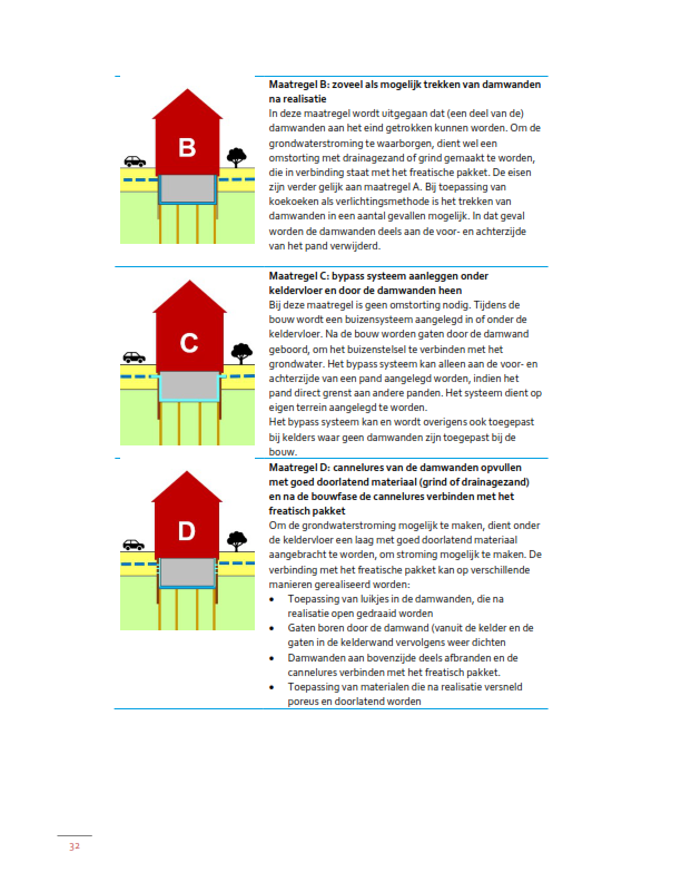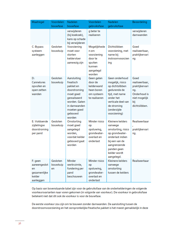 De maatregelen zoals die in het Afwegingskader zijn vastgelegd voor kelders die wel aan de bovengenoemde maatvoeringeisen voldoen zijn dus niet zonder meer toepasbaar. Uit het geohydrologisch rapport zal dus moeten blijken welke maatregel kan en zal worden toegepast om de kelder op de betreffende locatie grondwaterneutraal aan te leggen.