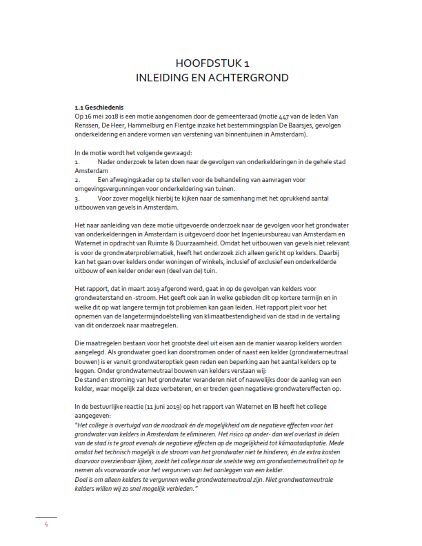Gelet op artikel 5, lid 5.3, sub a, van de regels van het (paraplu)bestemmingsplan Grondwaterneutrale kelders van de gemeente Amsterdam en de bestemmingsplannen, waarbij in de regels wordt verwezen naar de beleidsregel "Grondwaterneutrale Kelders Amsterdam, als onderdeel van het tijdelijk deel van het Omgevingsplan gemeente Amsterdam;