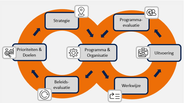 Verderop in dit beleidsstuk is te lezen dat wij de doelstelling hebben om een uniforme en professionele beleidscyclus te borgen in de organisatie. Onderdeel van deze doelstelling is ook de samenwerking, maar vooral de samenhang tussen beleid en uitvoering te intensiveren en onze rol in de terugkoppelingsfase te verstevigen. Deze doelstelling en bijbehorende activiteiten in het uitvoeringsprogramma dragen bij aan het opstellen van een meer specifieke analyse van inzichten in toekomstig beleid.