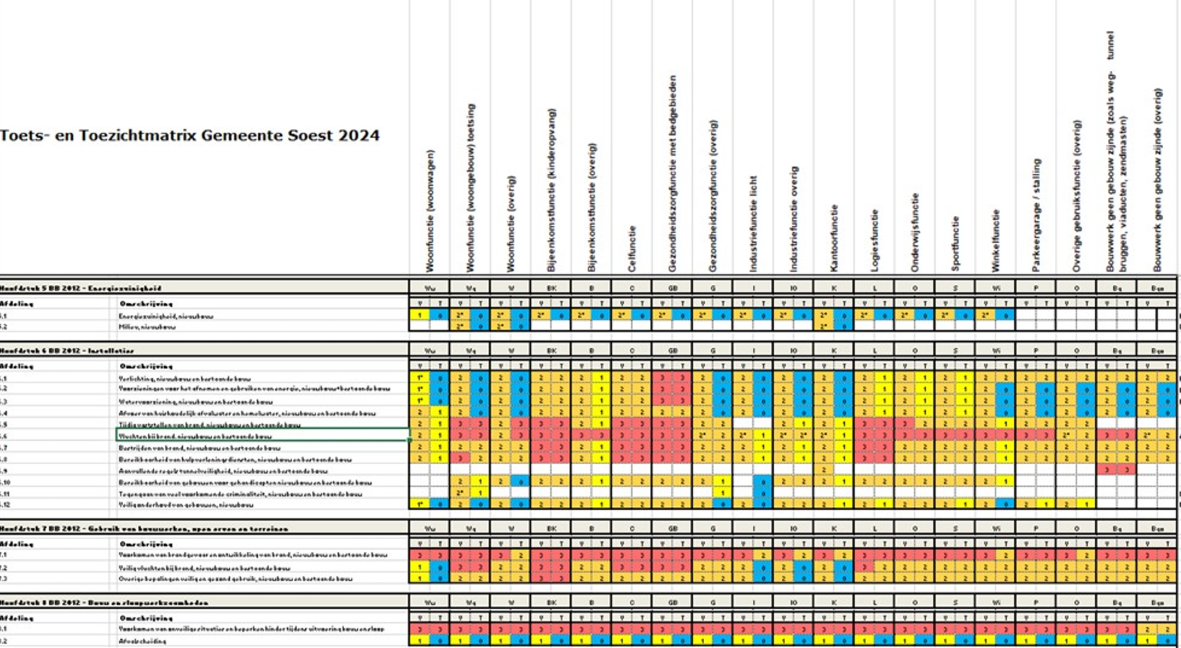 Voor sommige gebouwen is voor brandveilig gebruik een omgevingsvergunning nodig, bijvoorbeeld voor een kinderdagverblijf, verpleeghuis of hotel. Voor sommige andere gebouwen is alleen een melding nodig, bijvoorbeeld voor gebouwen waar meer dan 50 personen tegelijk aanwezig kunnen zijn, zoals een bibliotheek. Op sommige andere gebouwen gelden alleen algemene regels voor brandveilig gebruik, zoals een kleine winkel. De risico's van het niet naleven van de regels omtrent brandveilig gebruik betreffen de fysieke veiligheid van personen (korte termijn). De grootste risico's liggen bij gebouwen met logiesfuncties of gebouwen waar niet of minder zelfredzame personen verblijven, zoals kinderen of gehandicapten. Het toezicht op de naleving van vergunningen, meldingen en algemene regels omtrent brandveilig gebruik van gebouwen in de gemeente Soest is belegd met VRU.