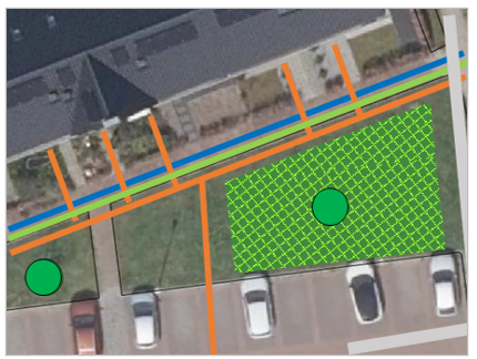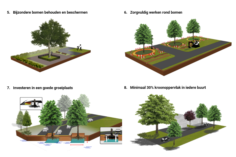 Bij nieuwbouw en reconstructies willen we dat 30% van de ondergrondse ruimte beschikbaar is als groeiruimte voor groen en bomen. Dit bekijken we per project. Soms geldt dit voor een hele woonwijk tegelijk. In dergelijke gevallen zou bijvoorbeeld een park of grote groene ruimte kunnen worden ingericht, bijvoorbeeld gecombineerd met hemelwaterafvoer. Een goed voorbeeld in dit kader is de natuurinclusieve inrichting van ‘Plantage 3’ in Meteren.