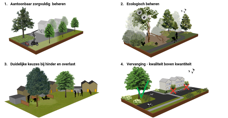 De punten uit deze paragraaf worden verder uitgewerkt in het beheerplan dat we opstellen na dit Programma Bomen.