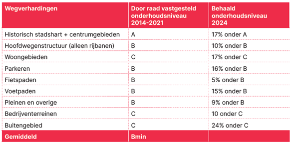 Overall constateren we een verdere achteruitgang, waarbij uit expert analyses ook gebleken is dat het niet gelukt is het gewenste en vastgestelde onderhoudsniveau vast te houden.