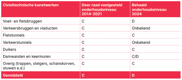 Bovenstaande strategie leidt tot de onderhoudsniveaus in tabel 5.1