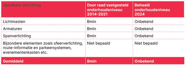 Tabel 3.5: Behaalde onderhoudsniveaus openbare verlichting in 2024