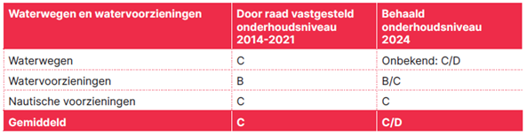Tabel 3.6: Behaalde onderhoudsniveaus waterwegen en watervoorzieningen in 2024